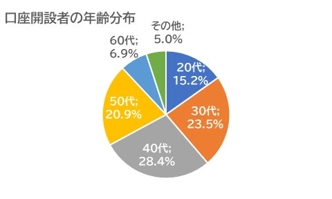 新規にFX口座を開設した投資家は、40代が28.4%でトップとなり、その次は30代の23.5%、50代の20.9%、20代の15.2%となった。