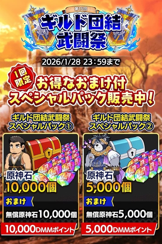 1回購入限定の「第15回ギルド団結武闘祭スペシャルパック」が2種期間限定で登場!