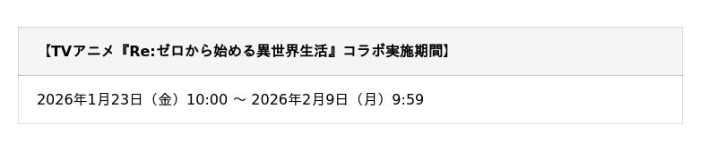 TVアニメ『Re:ゼロから始める異世界生活』と待望の初コラボ実施!