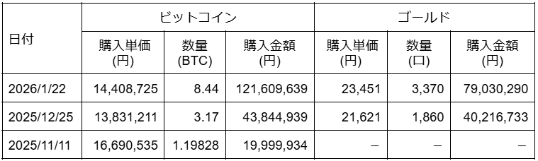 ビットコイン及びゴールドの追加購入に関するお知らせ