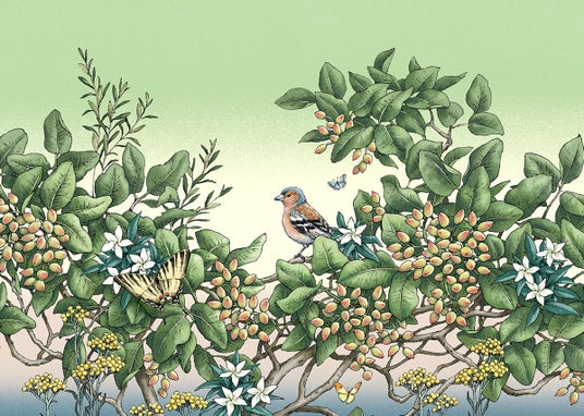 シチリア、エトナ山の麓に生育するピスタチオの木をメインのモチーフとし、シチリア由