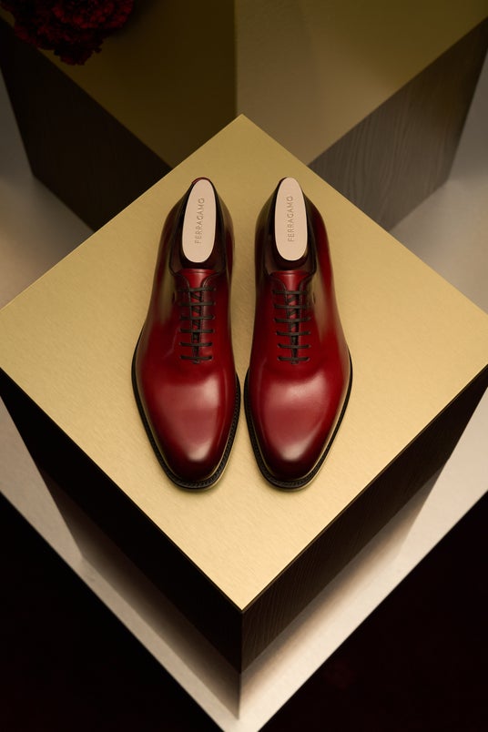 熟練した職人の手により160以上の工程と6時間を超える手作業を経て仕立てられる、フェラガモのメンズフットウェアのヘリテージを象徴するこのスタイルは、インソールとアウトソールの間に挿入される、厚みがありながらも柔軟性を備えたレザーの層、トラメッザ=中間と呼ばれるパーツにその名を由来している。創業者サルヴァトーレ・フェラガモが1920年代に開発し特許を取得した製法である、グッドイヤー・ウェルト製法のミッドソールに、コルクではなくレザーを用いることで、数回履くとレザーが足形を記憶し、自分だけの一足へと育つ特別な履き心地を実現する。さらに、同じく、サルヴァトーレ・フェラガモが特許を取得したスチールシャンクを採用することで、足元をしっかりと支える設計に。伝統に根ざしながらも革新によって磨き上げられたこの一足は、長く愛用できることを前提に仕立てられた逸品であり、時代を超えて受け継がれる洗練を体現している。