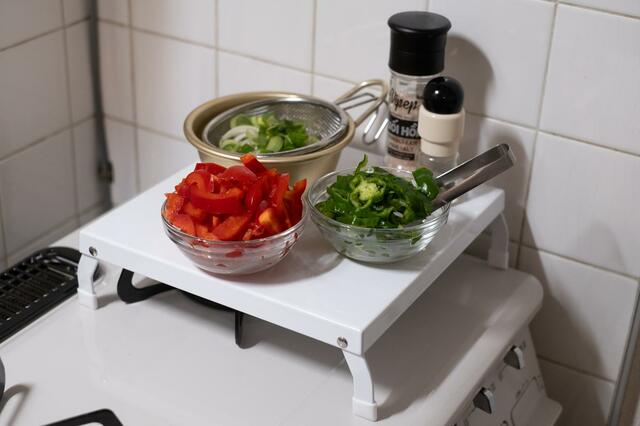 食材の数が多い時も、カットしたものをこの上に置いておけるので便利。