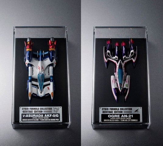 OVAアニメ『新世紀GPXサイバーフォーミュラSIN』より、「νアスラーダAKF-0/G スパイラルブーストモード」「凰呀AN-21 スーパー・エアロ・ブーストモード」がサイバーフォーミュラコレクション-Heritage Edition-シリーズに登場!!