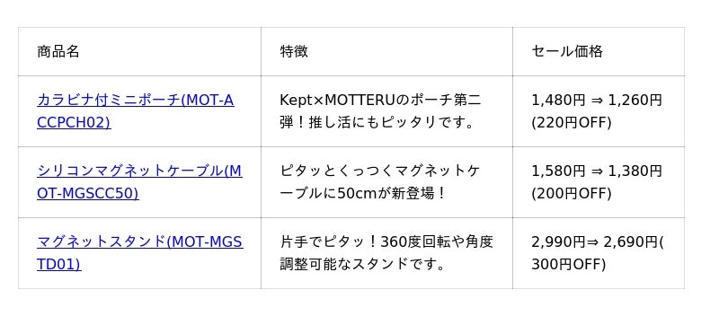 1月27日(火) 9:00~2月2日(月) 23:59まで開催予定の「Amazon 第2回スマイルSALE」において、MOTTERUの人気アイテムを最大約30%OFFで販売いたします。