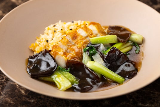 宮城県が誇る希少なブランド豚「伊達の純粋赤豚」を主役に、生きくらげの弾力ある食感を加えたパイコー炒飯。パラパラとした炒飯に、繊細な甘さのジューシーな豚肉のコクと香ばしさが移り、濃厚な味わいへと進化した珠玉の逸品。