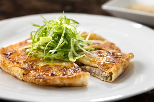 希少な熊本あか牛タンとキャベツ、白菜、にら、ネギを入れた餡を皮で包み、円盤状に形作り蒸してから焼きあげました。仕上げに九条ネギをのせ、熱した油をかけることで、牛タンの味わいと食感はもちろん、相性の良い九条ネギの豊かな香りと甘みをお楽しみいただけます。