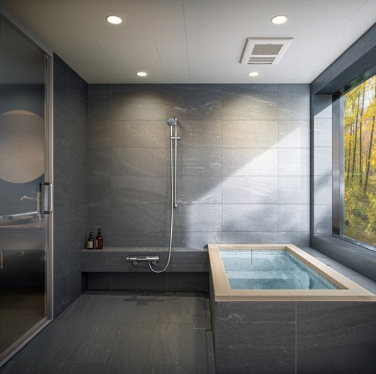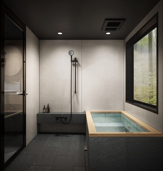 また、天井にはマットブラック仕上げを新たに採用。空間全体を引き締め、より上質で落ち着きのある浴室演出を可能にしました。