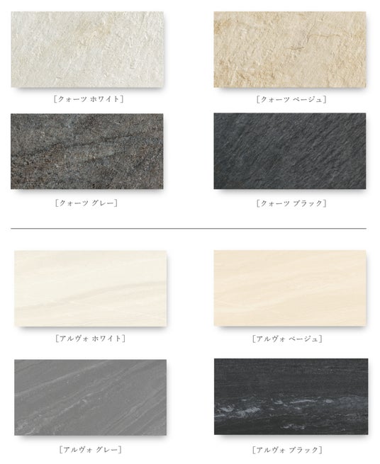 平田タイル「Hi-Ceramics」シリーズのクォーツ4色に加え、シンプルながらも存在感のあるデザインで、空間に洗練された安らぎをもたらす「アルヴォ」4色を新たに追加し、計8色からお選びいただけます。