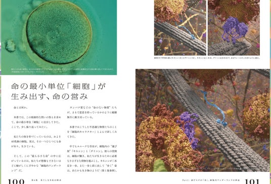 超高画質CGで細胞内世界を紹介する書籍限定特集ページ「華やかな細胞世界」を収録