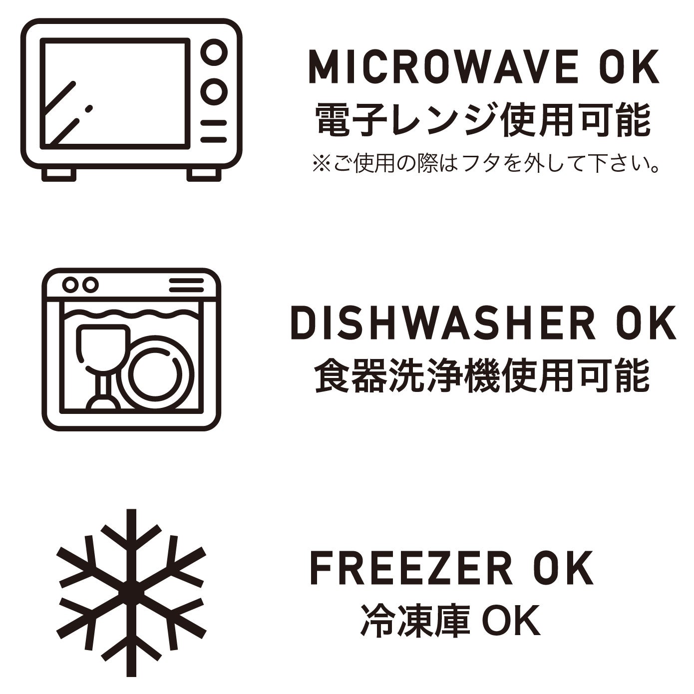 電子レンジ・食器洗浄機・冷凍庫対応