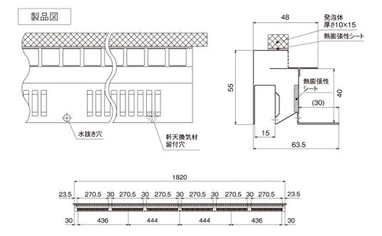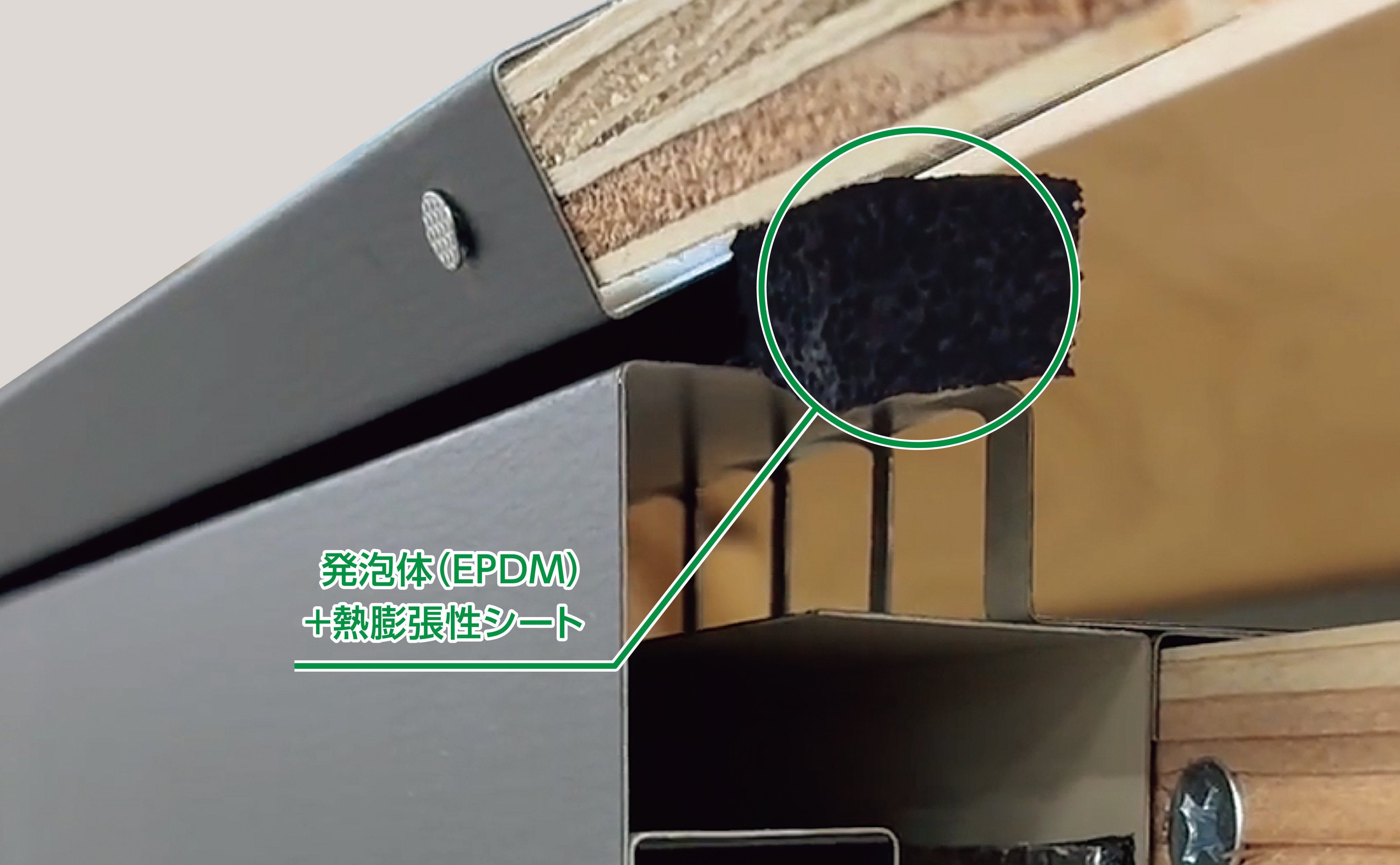 材質: カラーGL鋼板*(高耐食仕様、厚さ:0.35mm) *JIS G3322 発泡体:EPDM 熱膨張シート:ブチルゴム系