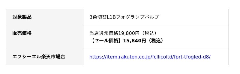 楽天お買い物マラソンでL1Bフォグが最大20%OFF、その他人気LEDパーツも最大40%OFFで提供