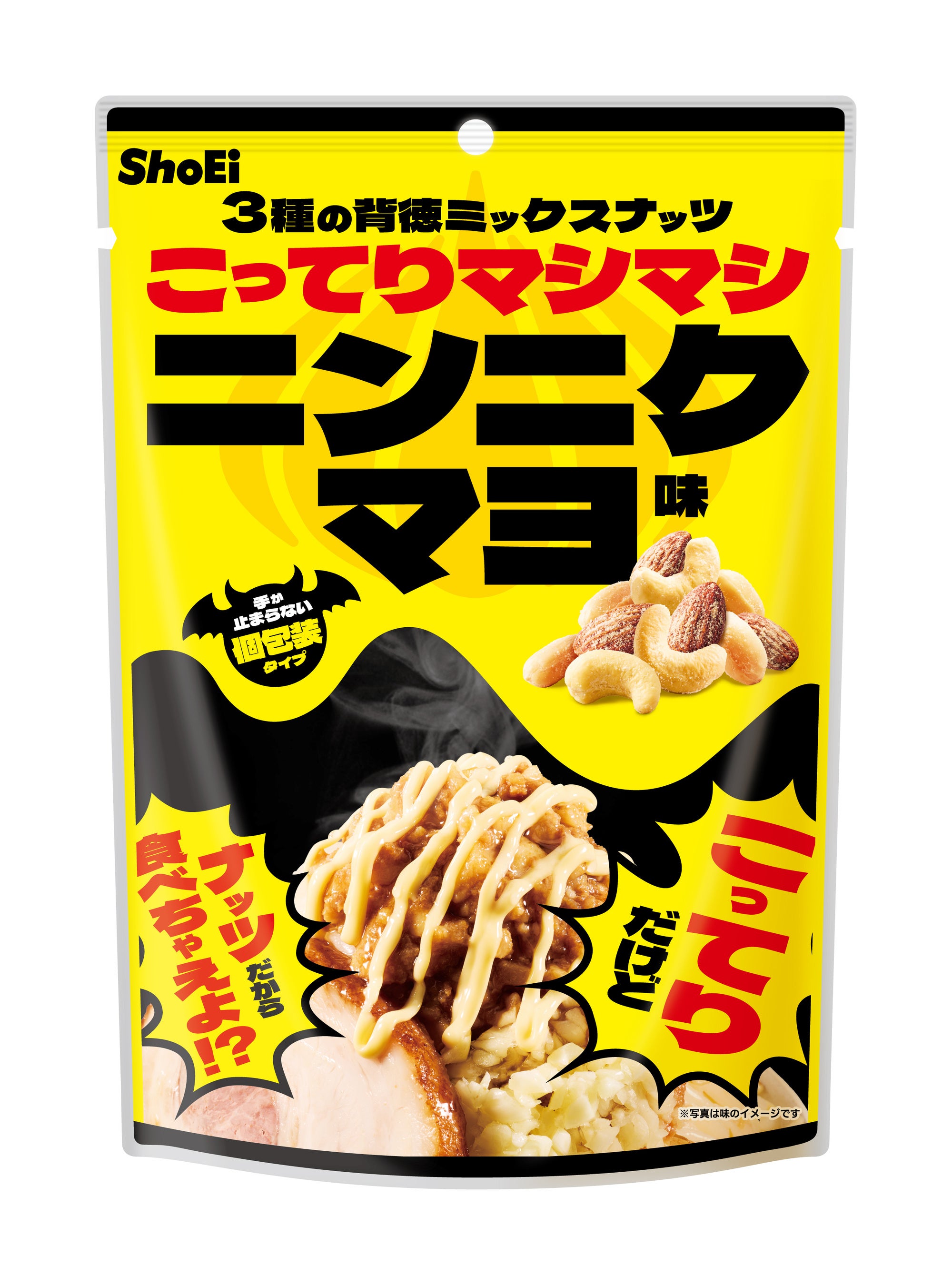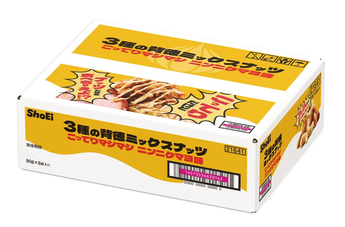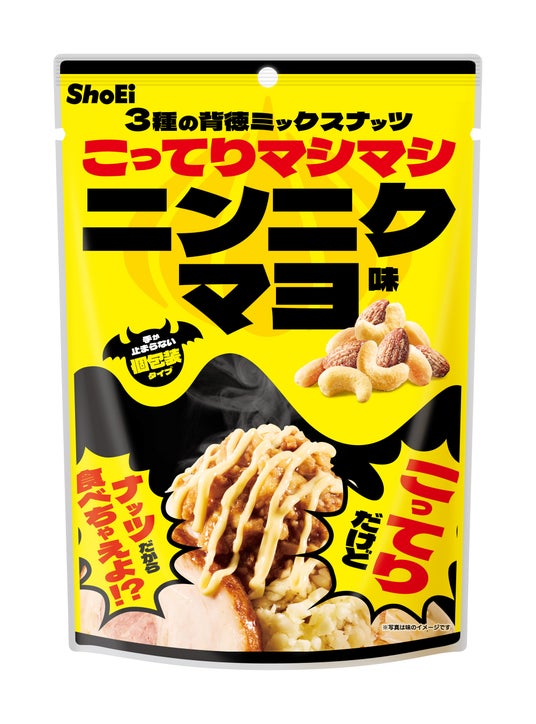 2026年1月26日(月)より、『3種の背徳ミックスナッツ ニンニクマヨ味』を全国のスーパーマーケット、ドラッグストアなどで発売いたします。
