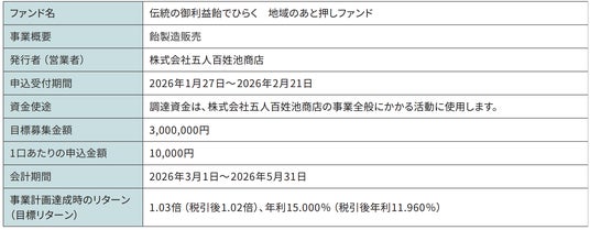 投資型クラウドファンディング募集概要