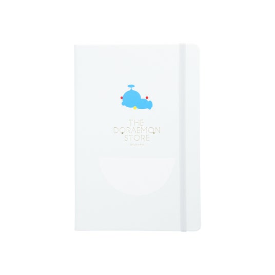 THE DORAEMON STOREのロゴマークをあしらった、ハードカバーのノートブックです。デザインの一部はゴールドの箔押しで仕上げ、高級感を演出しています。角度によって見え隠れする、クリア印刷の四次元ポケットがポイントです。