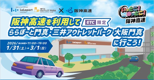 阪神高速道路株式会社(本社:大阪市北区、社長:上松英司)とららぽーと門真・三井アウトレットパーク 大阪門真(所在地:大阪府門真市、運営:三井不動産商業マネジメント株式会社)では、共同企画として「阪神高速を利用して『ららぽーと門真・三井アウトレットパーク 大阪門真』に行こう!」キャンペーンを、1月31日(土)から3月1日(日)まで実施いたします。