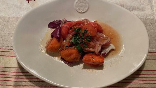 苺とチーズ、牛肉(イチボ)のステーキ(マーシュとキウイ)。