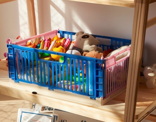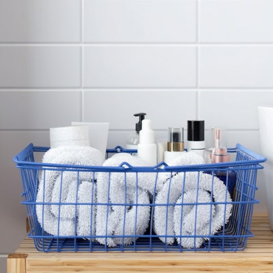 シンプルなバスケットにカラーがつくだけでオシャレに。ピンクもあります。