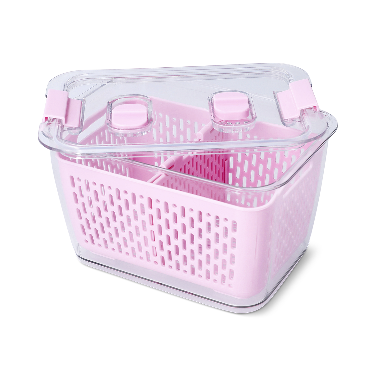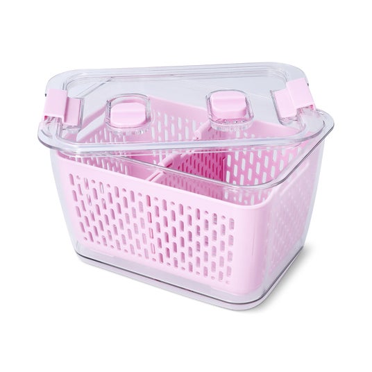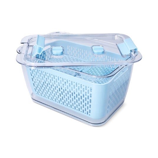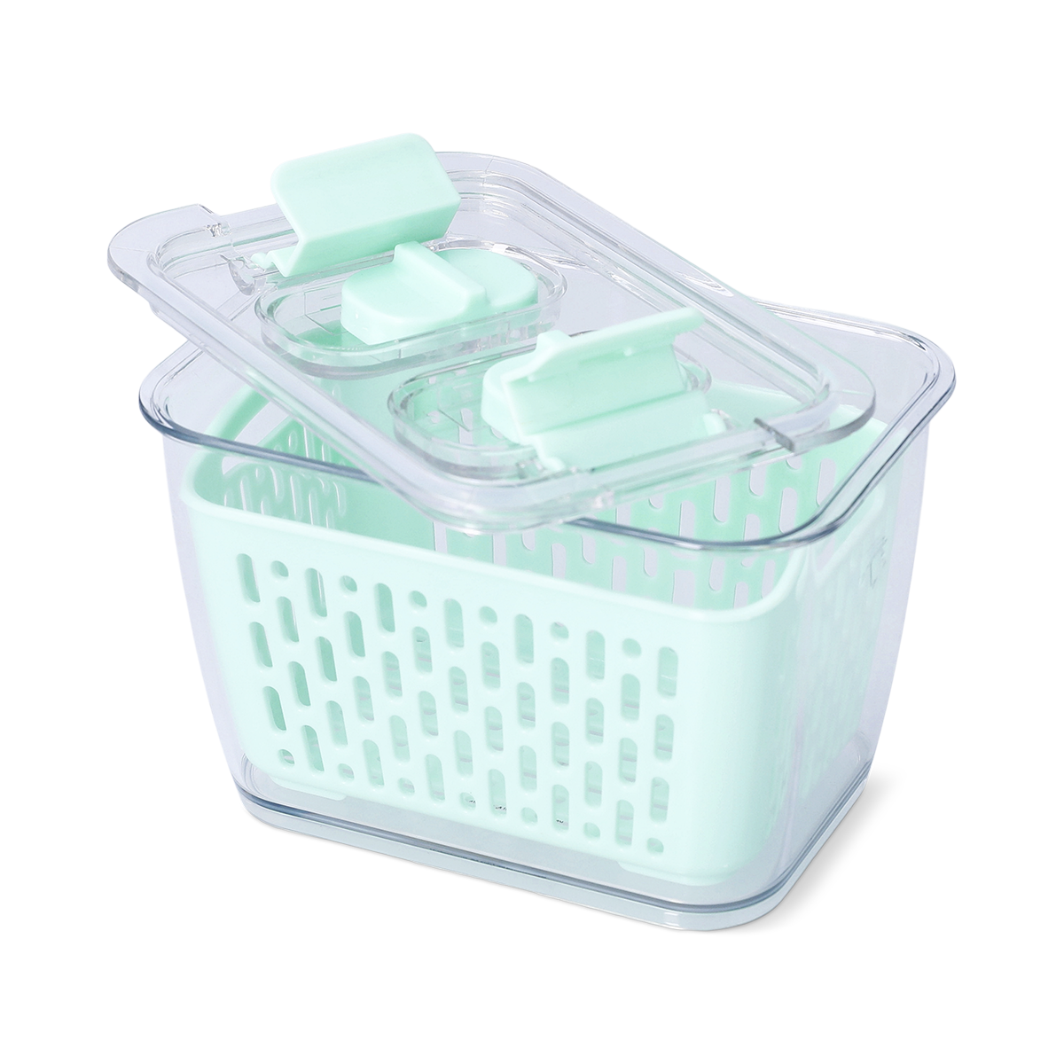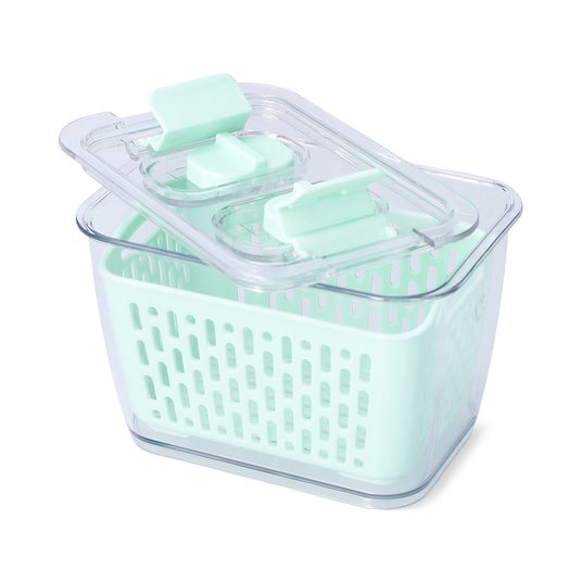 果物や野菜を洗って水切り、そのまま保存できるストレーナー付き保存容器。透明フタとサイドクリップで鮮度をキープ、冷蔵庫をすっきり爽やかに整えます。大きさが3つあり、サイズ違いで揃えたいかわいさ!