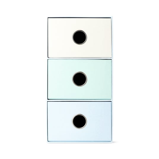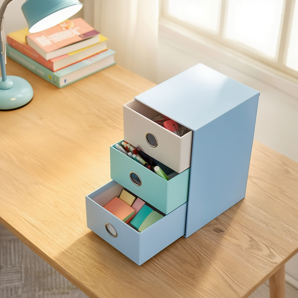 ワークスペースを整理整頓!文房具やメモ、その他の小物類の収納に最適です。引き出しが多いタイプも色違いであります。