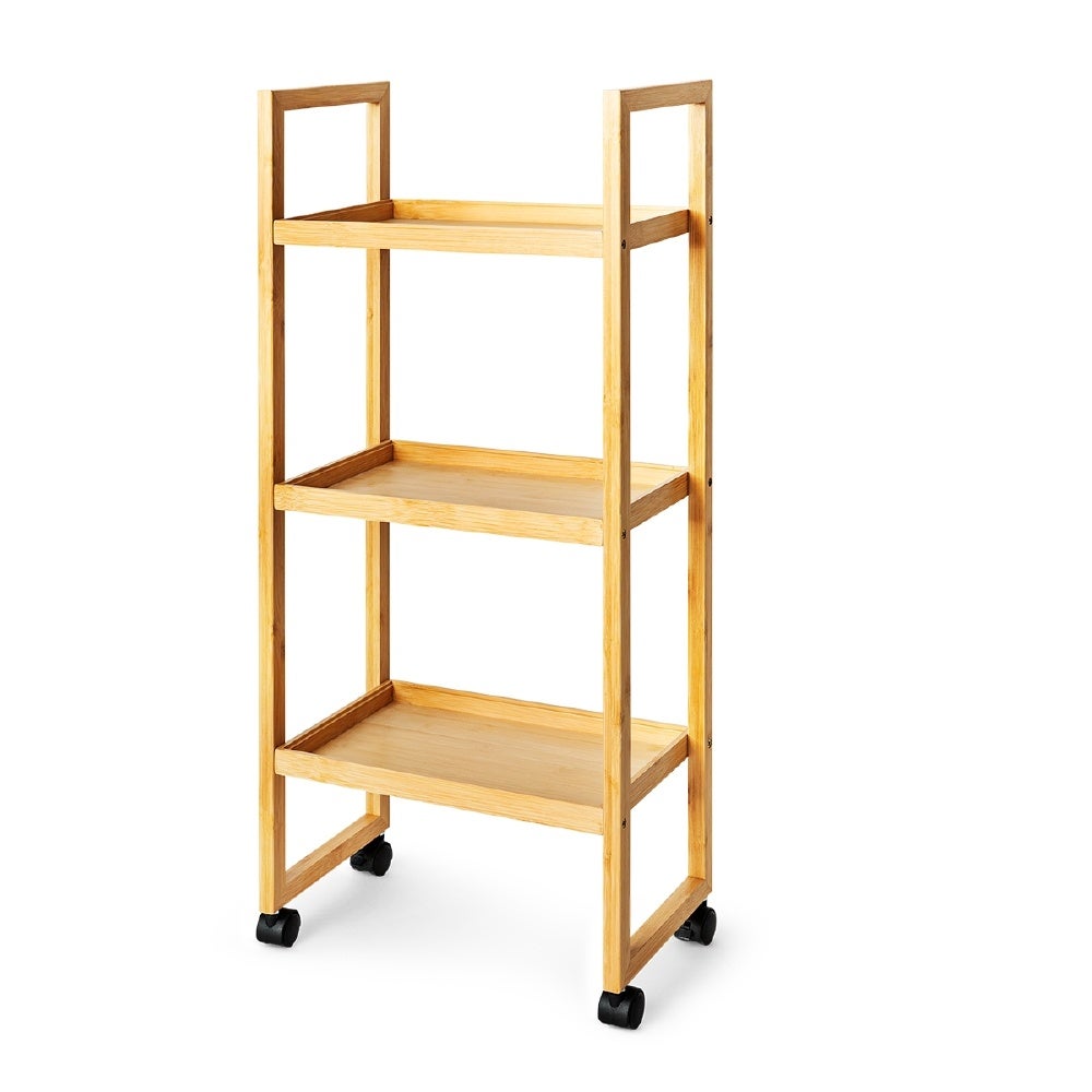 バスルームやキッチン、玄関など、日常使いの収納にぴったり。キャスター付きがうれしい。