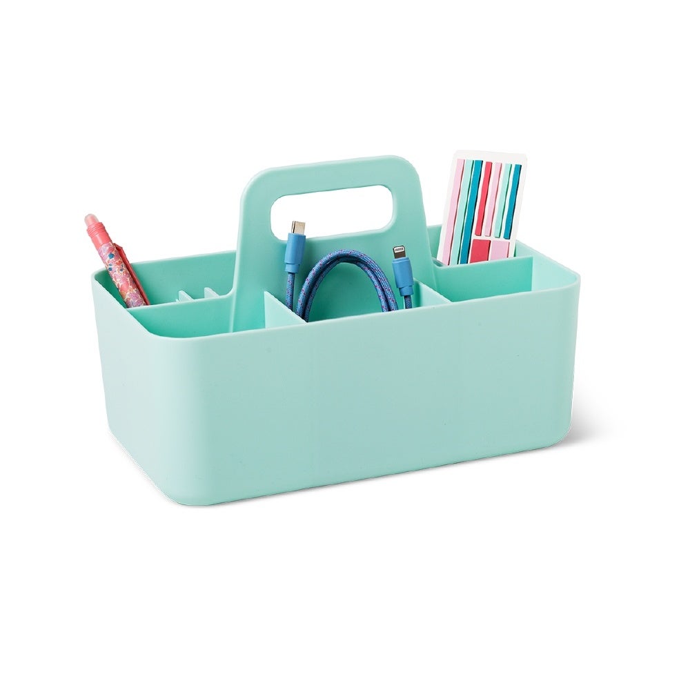 文房具の収納に最適。取っ手がついているので、使いたい場所にまとめて持って動けます。