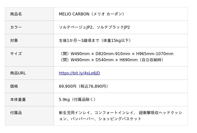 MELIO CARBONは、「持って軽い。押して軽い。ずっと軽い。」の“3カル”を追求し設計された、新生児から使用できる両対面式ベビーカーです。