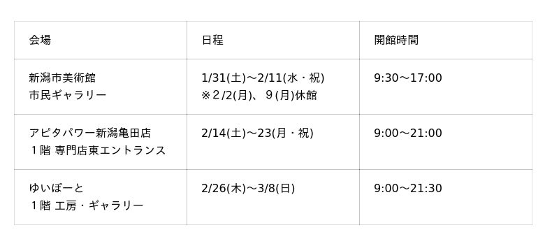 ■案内ページ(新潟市公式WEBサイト内)https://www.city.niigata.lg.jp/kanko/bunka/shinko/bunkakyousei/tomoniart_exhibition.html