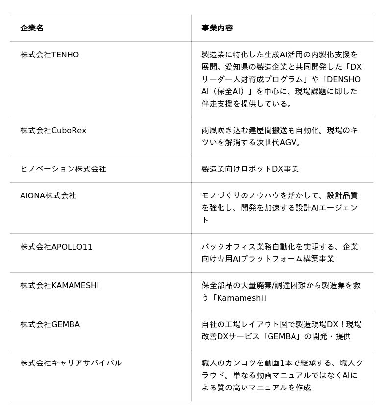 「製造業DXスタートアップパビリオン」の詳細はこちらからご確認いただけます。