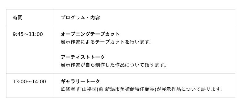 初日関連プログラム(会場:新潟市美術館)