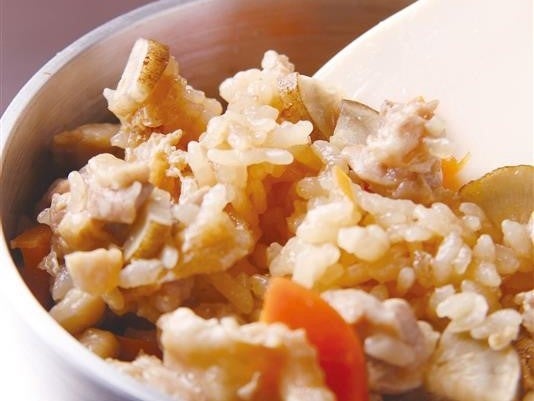 ◆鶏釜めし 820円「やきとり屋とりどーる」名物の釜めし。鶏肉やごぼう、人参などを20分以上炊き込み、あつあつ、炊き立てをお召し上がりいただきます。