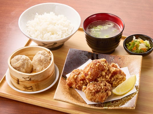 あつあつでジューシーな『肉汁焼売』と、特製ダレに漬け込んでカラッと揚げた『唐揚げ』はごはんが進む味わいです。