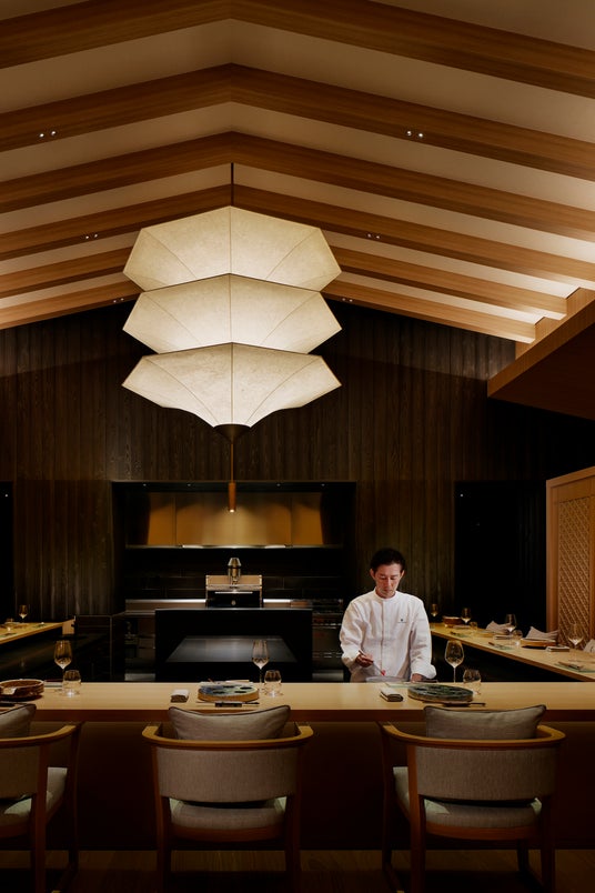 「自然・芸術・料理」をモチーフに、型にはまらない美しさを追求したフレンチを提供するレストラン「TENJIN」。ディナータイムのみオープンする完全予約制のシェフズテーブルでは、シェフがカウンターに立ち、“『琳派リフレクション』~ここでしか巡り合えない革新的な食体験~”をテーマに、限定コースを提供しています。敷地内のハーブ園で採れた新鮮なハーブや旬の野菜を取り入れたアーティスティックな料理の数々は、国内外のお客様から高い評価を得ています。