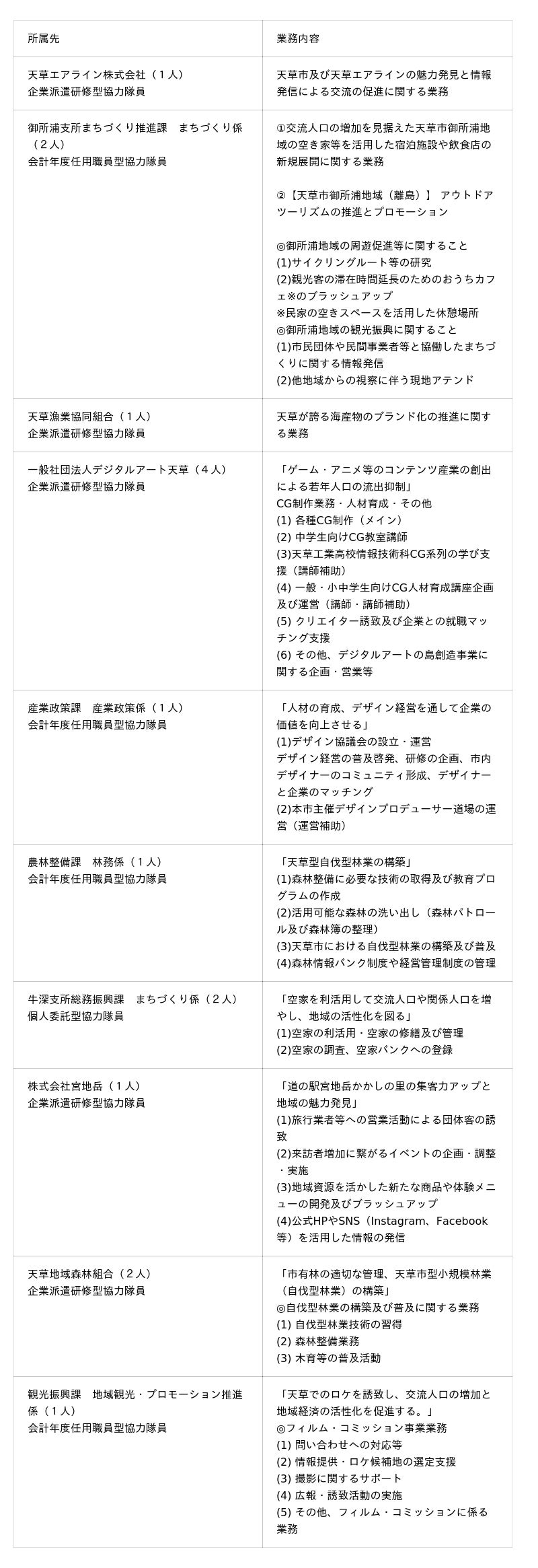 ○天草市地域おこし協力隊員等の活動状況(令和8年1月22日現在)