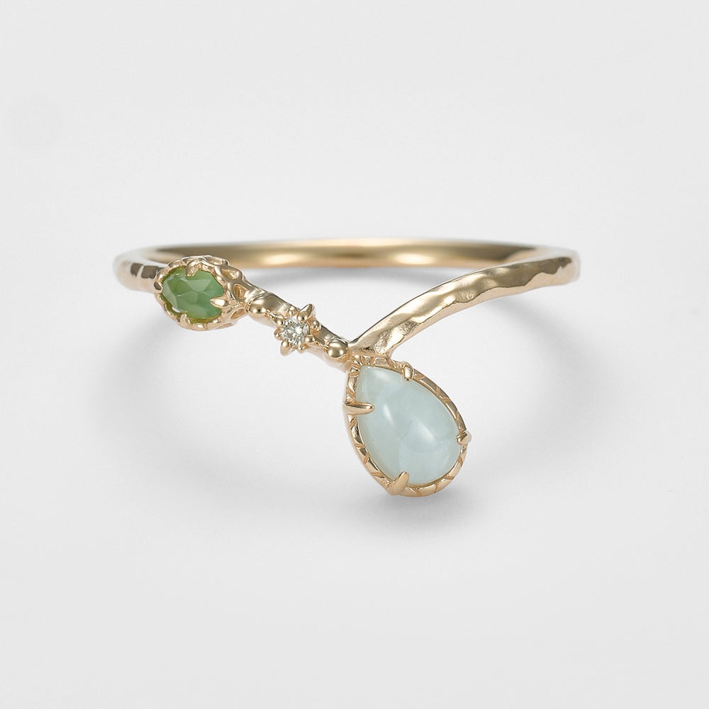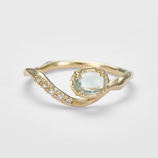 まるで春の小川のような瑞々しさを感じさせるグリーンクォーツをセッティング。/ 83,600yen