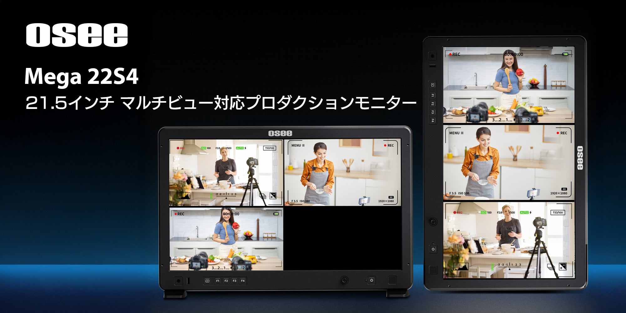 2026年1月30日(金)、Oseeよりマルチビュー対応の21.5インチプロダクションモニター「メガ 22S4」を発売。優れた視認性と多彩なレイアウトを提供し、撮影現場を強力にサポートします。