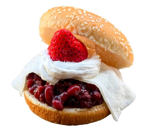 ▲花やしき修学旅行といえばこれ!山崎退のあんバーガー~豪華ばーじょん~