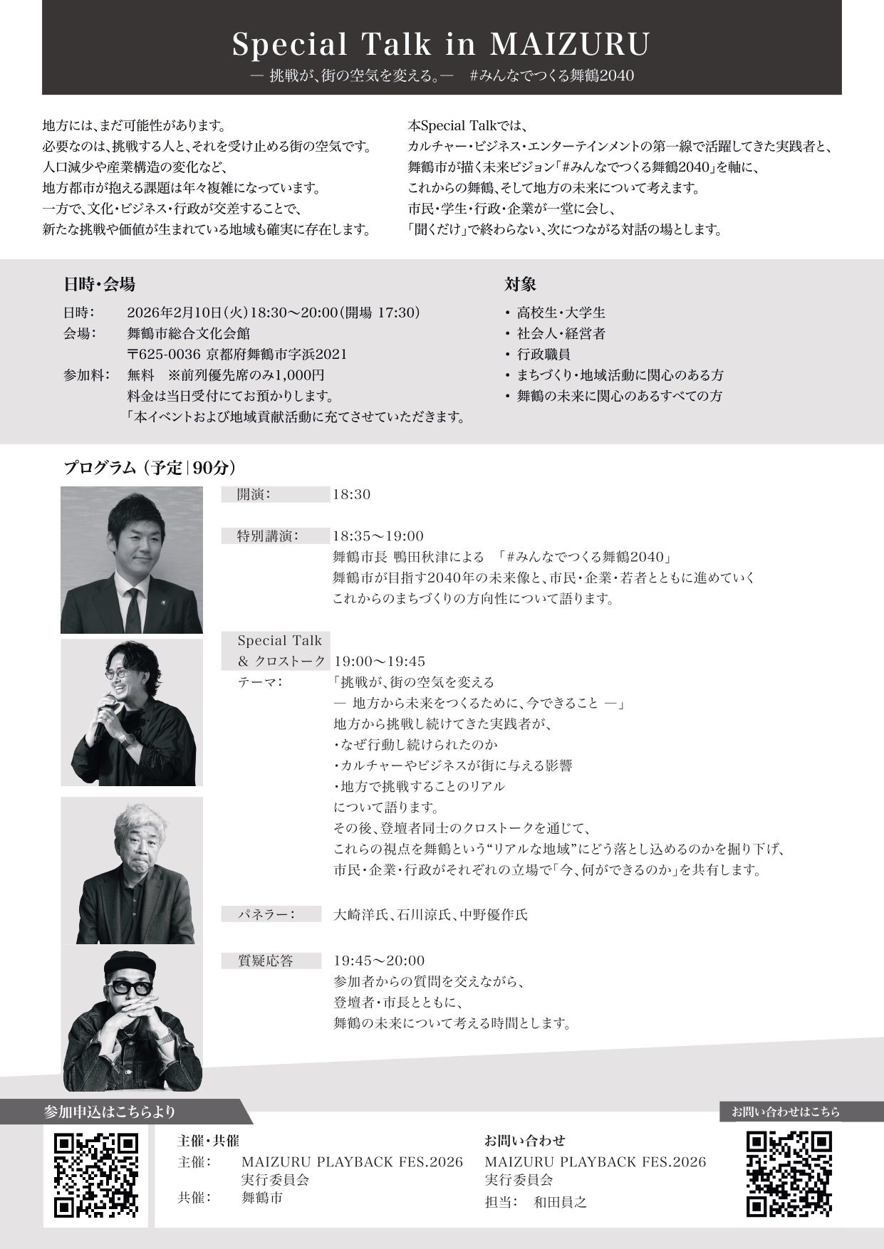 - 主催 MAIZURU PLAYBACK FES.2026 実行委員会