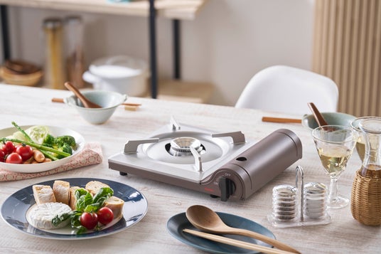 一人暮らしや少人数の食卓にぴったりな、コンパクトサイズのカセットこんろ。インテリアに馴染むやさしいニュアンスカラーで、食卓をおしゃれに彩ります。