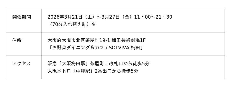 カフェのご利用にあたって、2026年2月20日(金)12時から予約サイトにて予約チケットの販売を開始します。チケットは時間制で、全日、事前予約(有料)が必要となります。予約チケットには、A4クリアファイル(全2種)、コースター(全10種)、ランチョンマット(全6種)がランダムで1つずつ付きます。