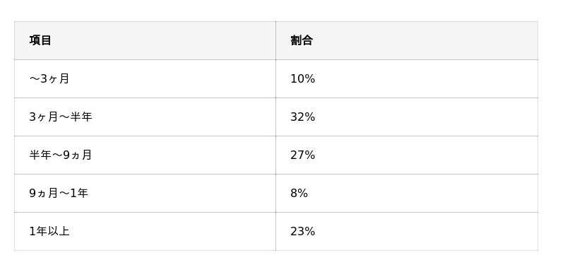 続いて27%で「半年~9ヵ月」、23%で「1年以上」という結果でした。