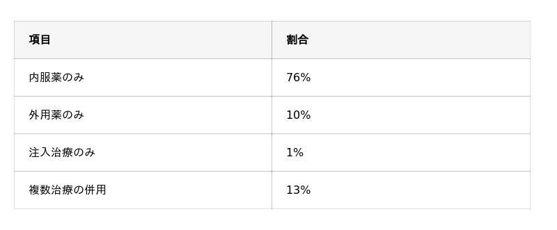 「外用薬のみ」や「注入治療のみ」の人はそれぞれ10%以下という結果にとどまりました。
