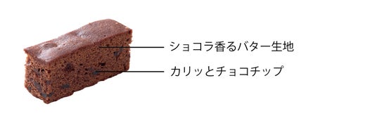 上質なカカオのコク深いバター生地に、カリッと食感のチョコチップを加えてしっとり焼き上げました。