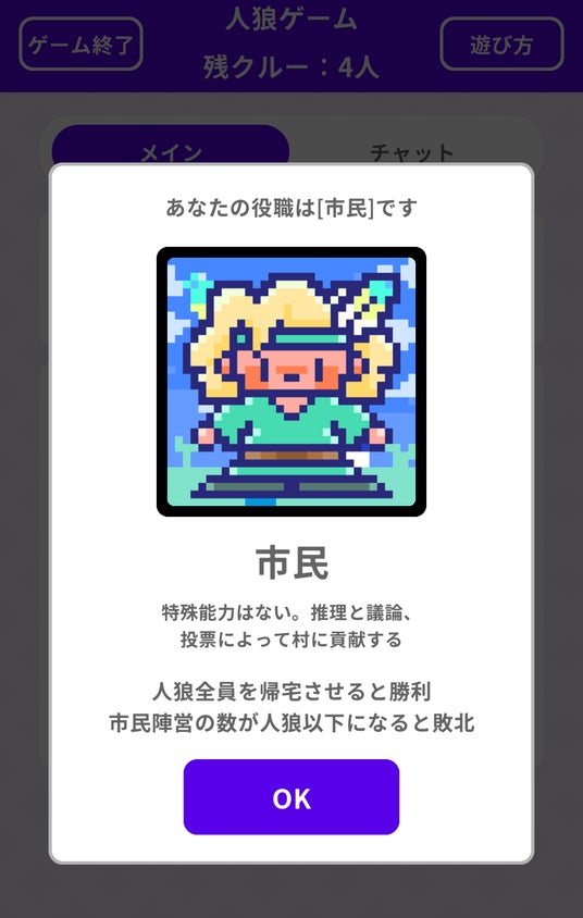 といった表現を採用。暴力的な表現で人狼ゲームに苦手な意識があるというユーザーも安心して遊べるよう、緊張感は保ちつつも、会話が過度に荒れにくい、パーティーゲームとしての人狼を意識した表現設計です。