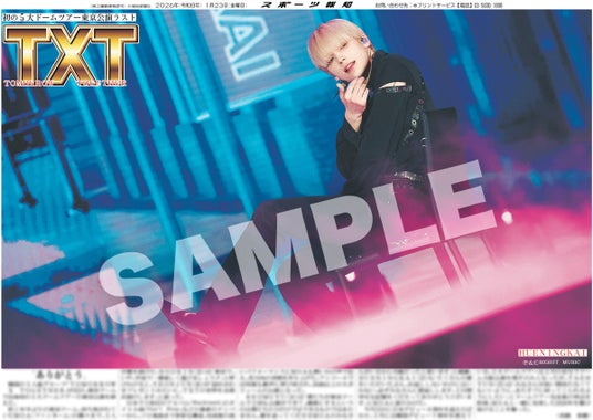 スポーツ報知を発行する報知新聞社(代表取締役社長・長谷川剛)は新聞の一部紙面をコンビニエンスストアのマルチコピー機からプリントできる「スポーツ報知コンビニプリント」サービスを展開中。スポーツ紙ならではの大きな写真を使った紙面をプリント版として販売しています。新たに1月23日付掲載、韓国の5人組グループ「TOMORROW X TOGETHER」初の5大ドームツアーの東京ドーム公演の紙面を発売中です。全員バージョンと各個人合わせて6種類です。