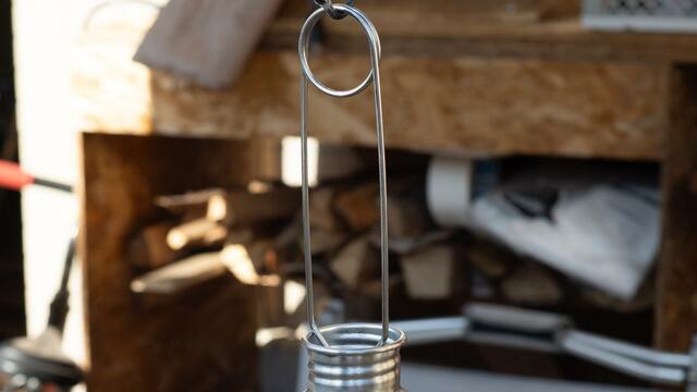 沸かした直後は当然アツアツなので革手袋は必須ですが、直接触らずに移動できるフックが付属しているのも便利なポイント。