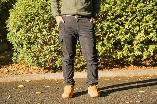 無印良品の「防風裏起毛ストレッチテーパードパンツ」は、屋外用の暖パンとチノパンの中間ぐらいのイメージ。