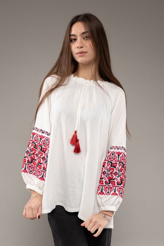 ウクライナ現地職人による手縫いの伝統刺しゅうをあしらった洋服。ヴィシヴァンカ レディース ワンサイズ 税込24,800円