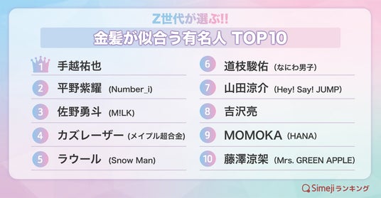 “ゴールド”にちなみ、見た目の印象を大きく変え、華やかさや存在感を引き立ててくれる「金髪」に注目。そんな金髪が似合うと思う有名人は誰?というテーマで、Z世代を中心にアンケートを実施しました。